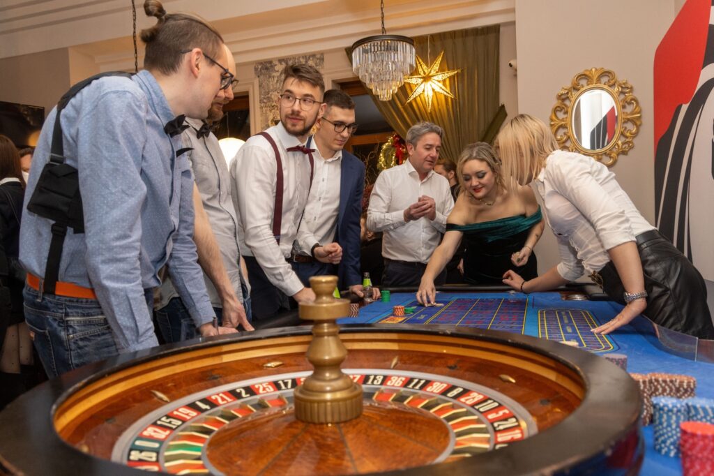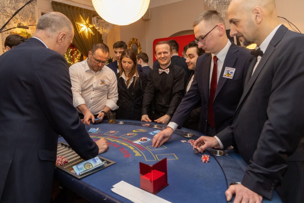 Główną atrakcją wieczoru było oczywiście kasyno. Ruletka kręciła się bez wytchnienia, przy stołach do pokera panowała pełna koncentracja, a emocje rosły szybciej niż liczba ticketów na Jirze w Black Friday.